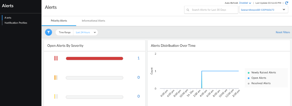 You can view new open alerts using the open_alerts_count_timeseries resource.
